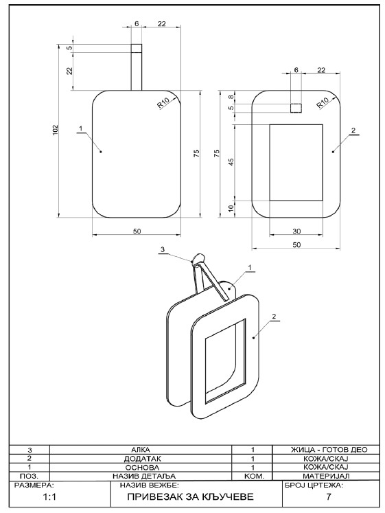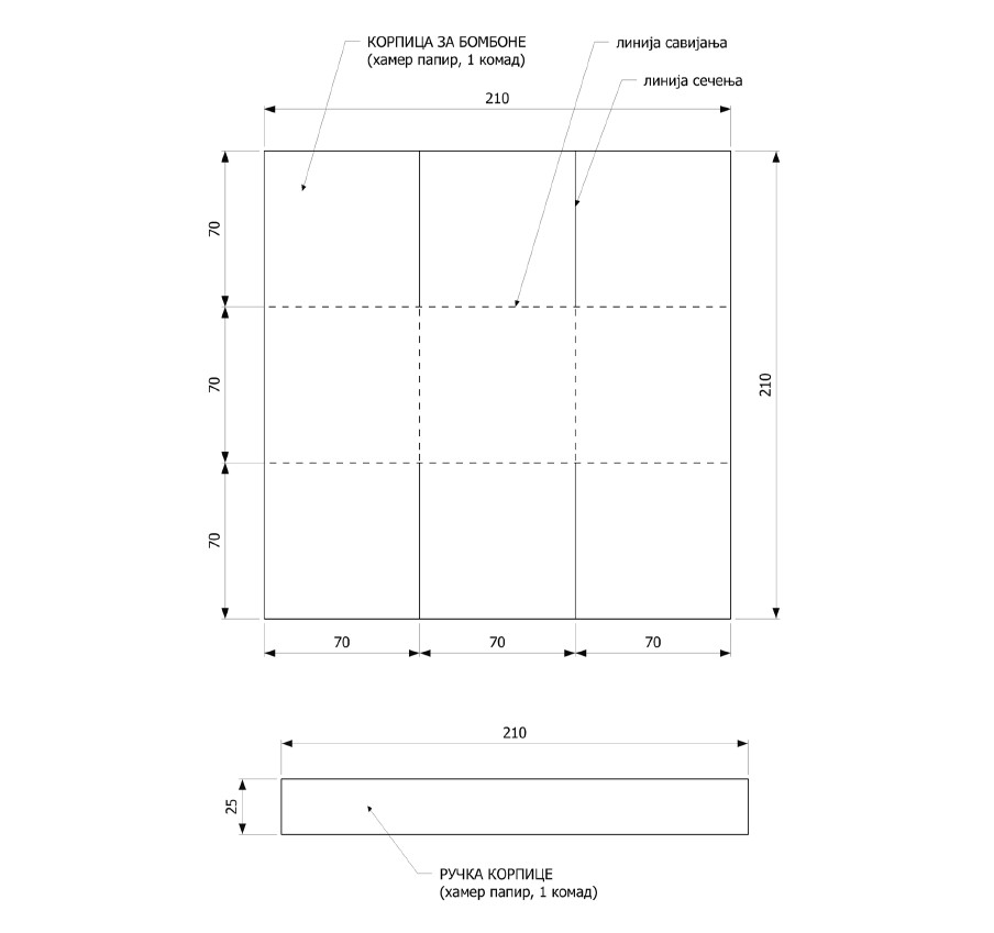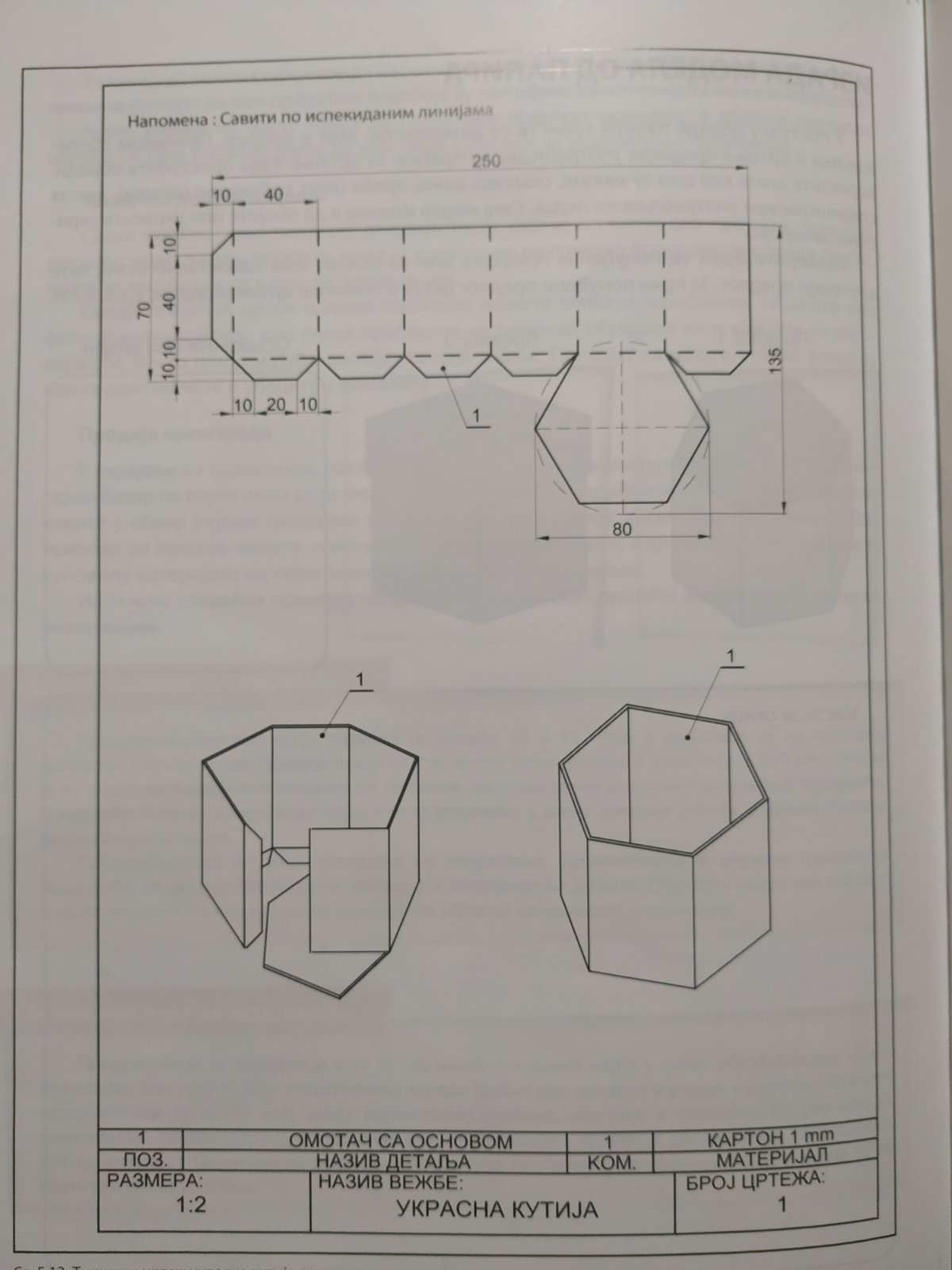 Na osnovu ortogonalne i izometrijske projekcije uraditi predmet od kartona.
