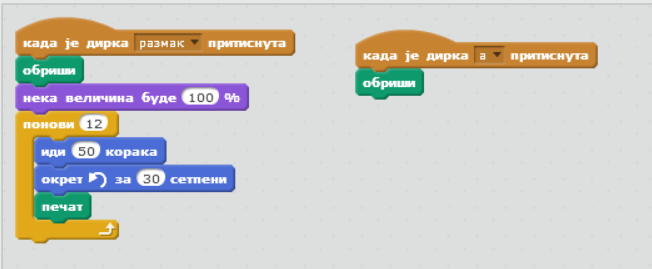 - kada se pritisne dirka razmak poleti navise 150 koraka tako sto 10 puta ponovi pomeranje navise 15 koraka