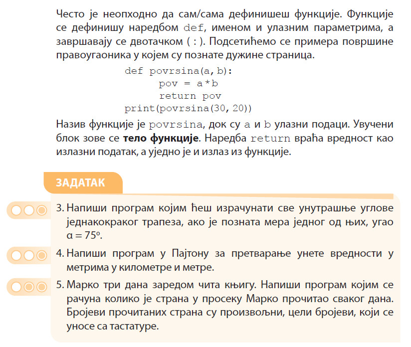 Procitajte primer o funkcijama i uradite tri zadatka: